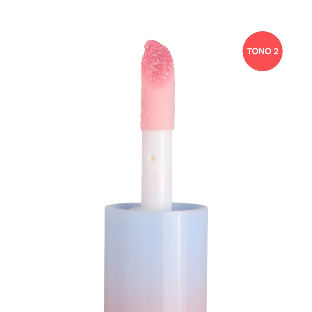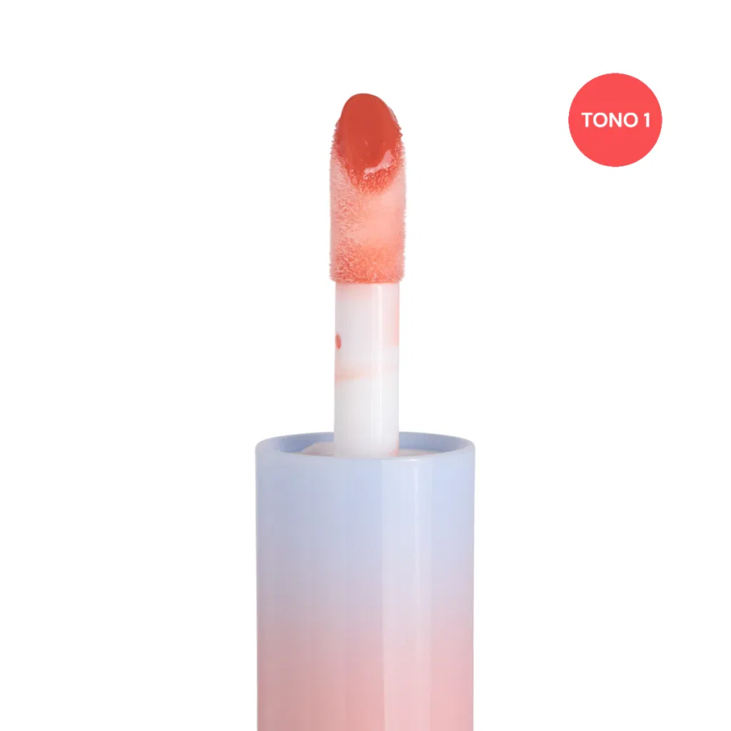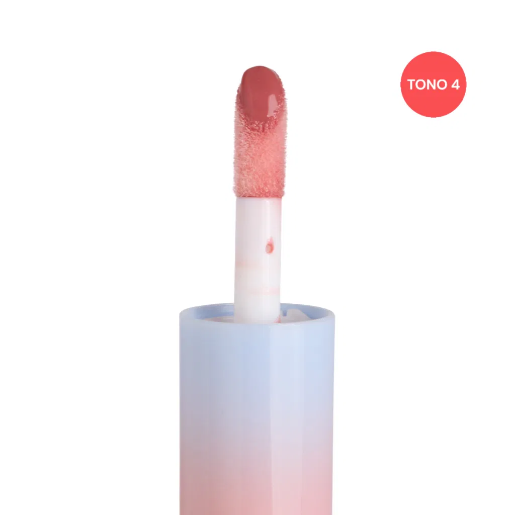 Lip gloss de acabado brillante con textura ligera y efecto hidratante.